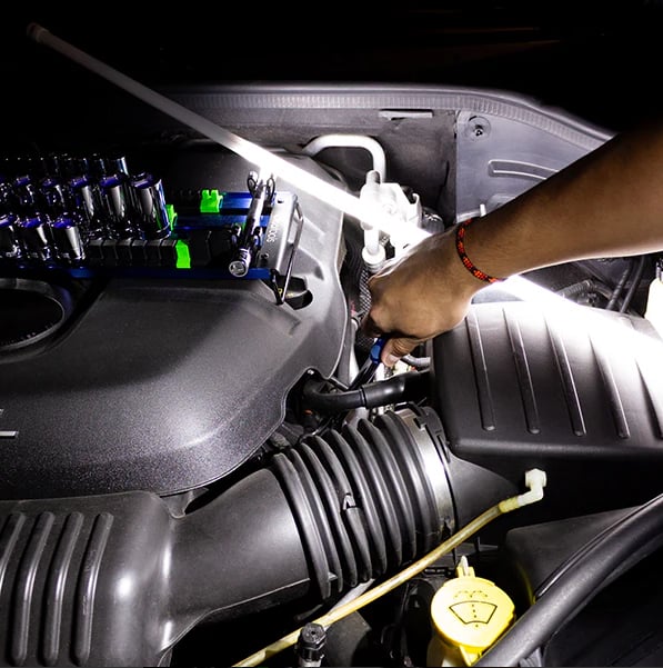 A 20" flexible LED strip lights up tight, hidden areasâperfect for engine bays, inspections, and more.